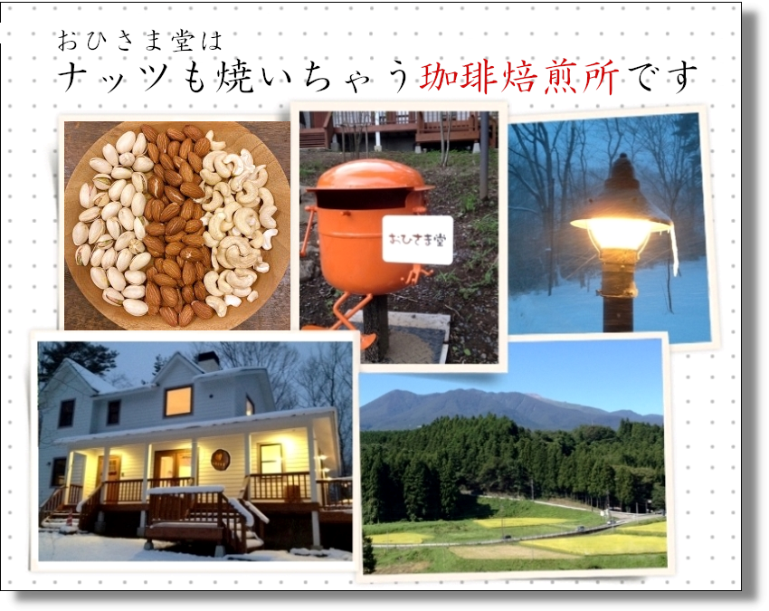 珈琲の焙煎機を使って焙煎したナッツのセットです。油も塩も使わないため、ナッツ本来の味が活かされた、たいへん美味しいナッツです。