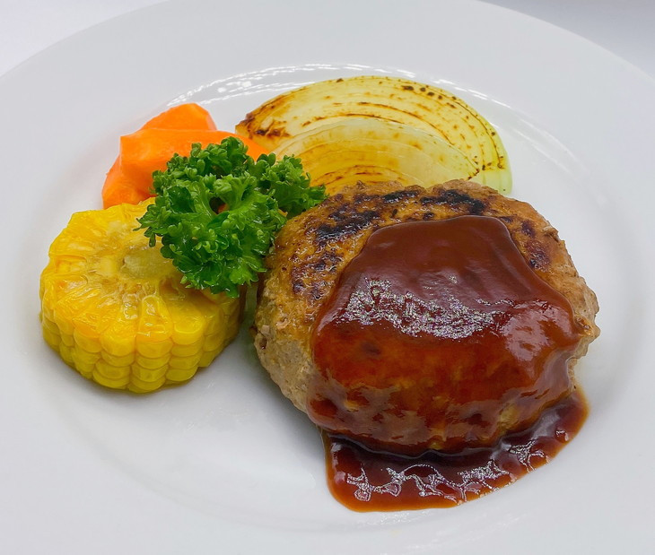 肉のあづまや直営焼肉店で味わえる牛タンが入った旨味のつまった特別なハンバーグをお楽しみいただけます。