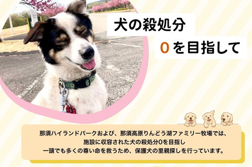 指定の動物愛護団体に保護されたワンちゃんを引き取り、那須ハイランドパークおよび那須高原りんどう湖ファミリー牧場にて里親探しを行っています。