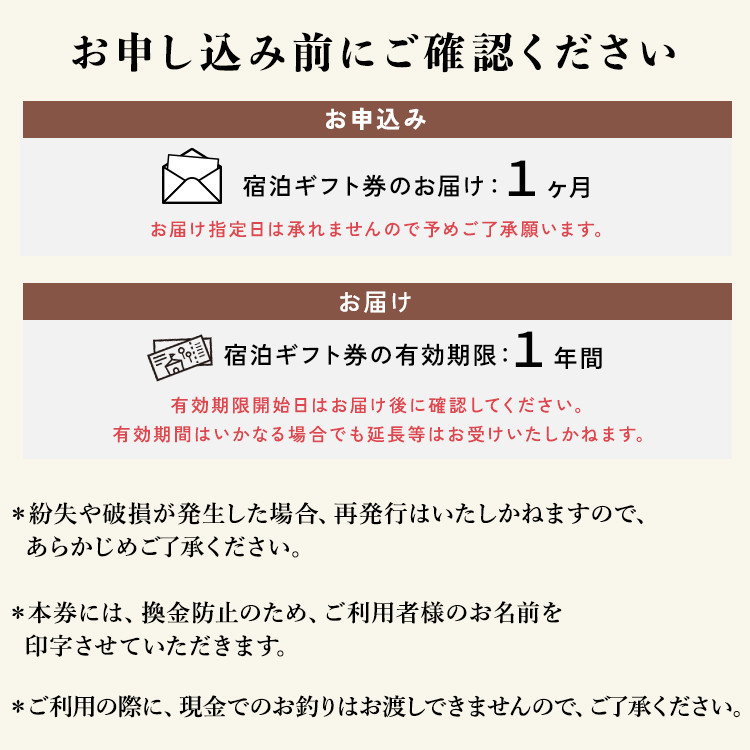〇宿泊券利用時に現金等によってお釣りをお出しすることは出来かねますので、ご注意ください。