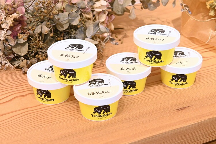 『たぬジェラ』はたぬき社を運営する『稲作本店』が生産するお米の米粉と旬の果物などを使用したクラフトジェラート。