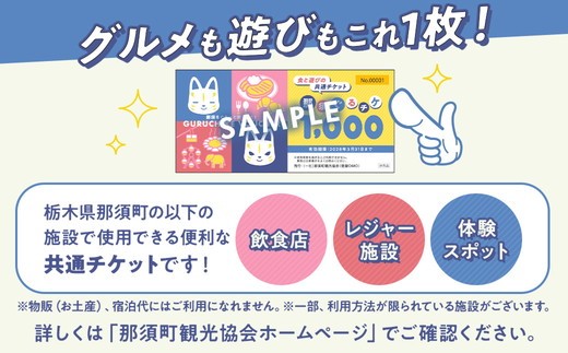 那須の美味しいグルメ&レジャーを満喫!使える場所が選べて安心の共通チケットです 那須町グルメ&レジャー共通券「那須ぐるチケ」3,000円分(1,000円券×3枚)〔B-137〕|チケット 券 利用券 商品券 クーポン券 割引券 食事券 食事 日帰り 旅行 日帰り旅行 観光 リゾート サファリパーク 動物園 遊園地 レストラン カフェ ジェラート グルメ ロープウェイ アウトドア レジャー 体験 家族旅行 那須高原 《2026年3月末までの申込みで有効期限延長!》