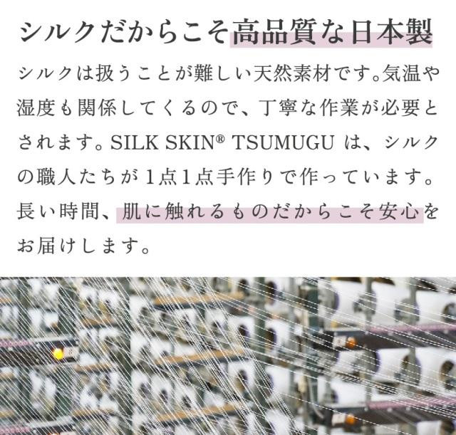 シルクは扱うことが難しい天然素材で、SILK SKIN(R)TSUMUGUは、高品質な日本製で、シルクの職人たちが1点1点手作りで作っています。