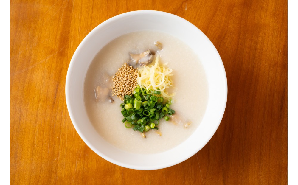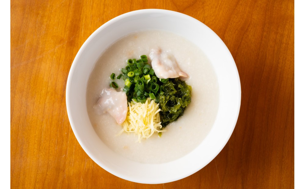 全国各地、海外より選び抜かれたお粥に合うお米を厳選し、貝柱、塩などを加えて4時間以上真心込めて煮込まれて出来たお粥。