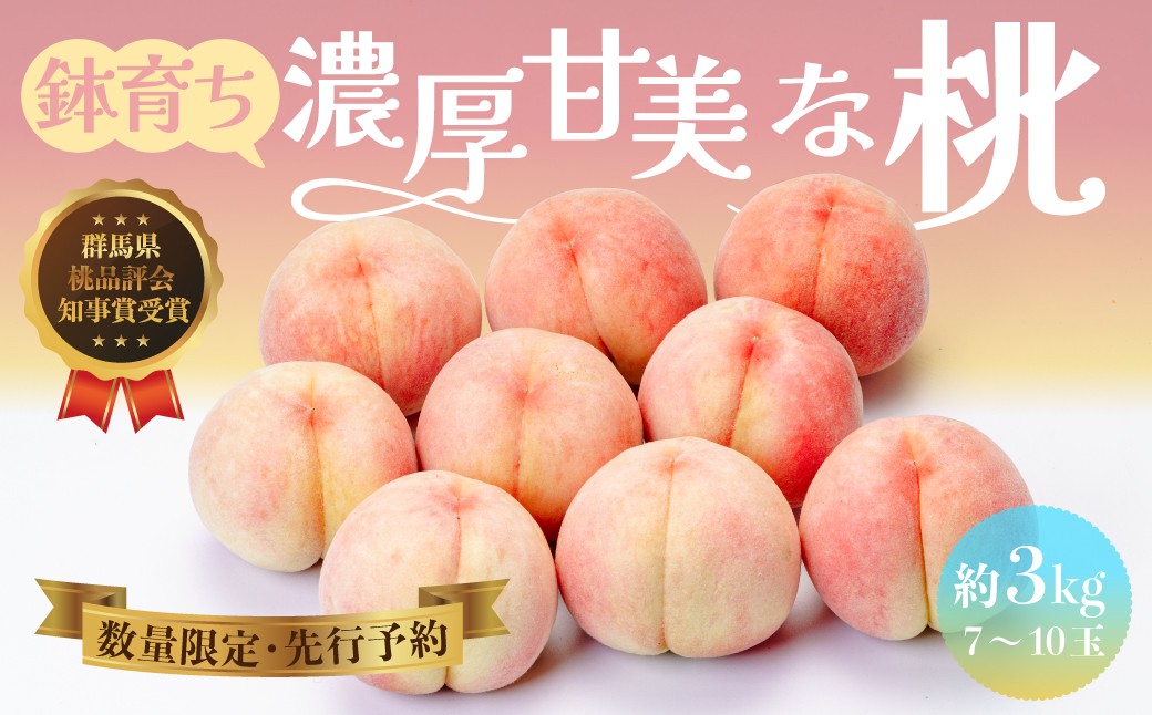 チョイス限定 桃 鉢育ち 濃厚甘美な桃 3kg 7~10玉|先行予約 数量限定 期間限定 桃 フルーツ 果物 産地直送 限定品 贈り物 新鮮 お取り寄せ デザート ギフト 風味豊か 香り 甘い 限定 果樹 フルーツ 旬 ジューシー みずみずしい 季節のフルーツ 前橋市 群馬県