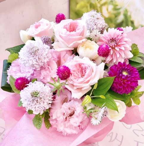 【21A004】 季節の花がギュッと詰まった旬のフラワーアレンジメント Mサイズ