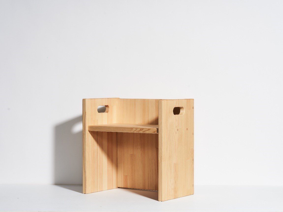 群馬県産ひのき集成材を使用した椅子です。方向を変えて、おすわりができるころから、大人の方の踏み台としても長く使えます。おままごとやお外でも、使い方はお子さまの自由な発想で、成長のおそばに置いていただけたら幸いです。
