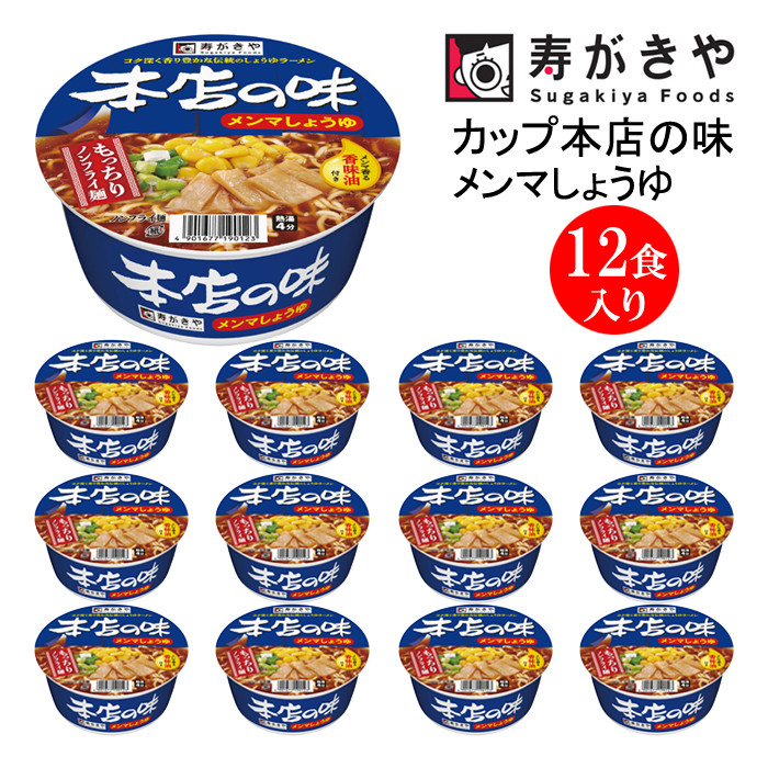 【23A018】 寿がきや『カップ本店の味メンマしょうゆ(香味油付)』12食入り(ノンフライ麺 しょうゆスープ)
