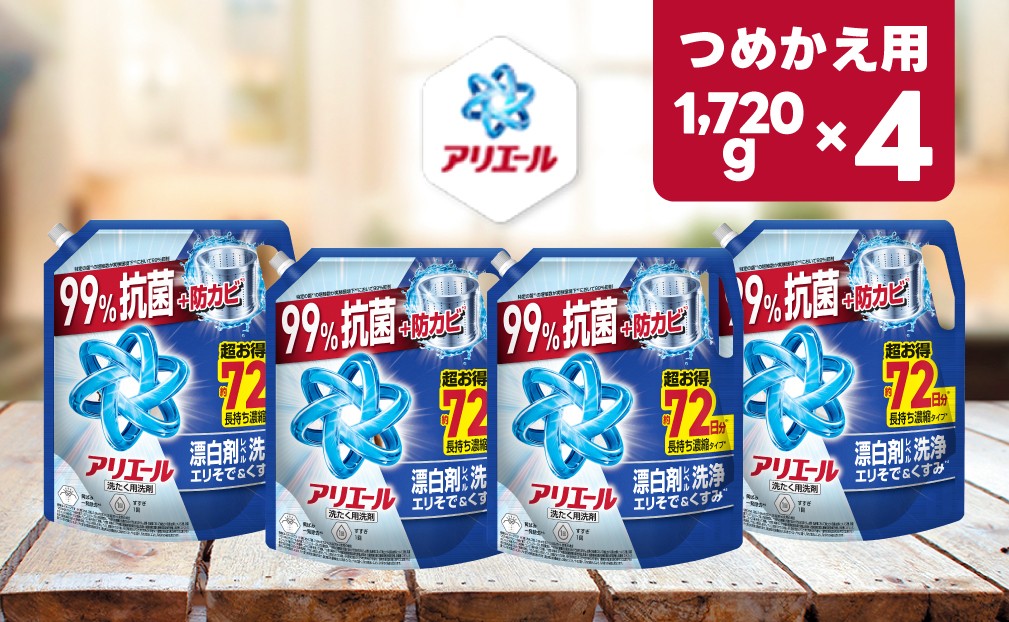【23A020】アリエールジェル つめかえ超ウルトラジャンボサイズ 1,720g×4個