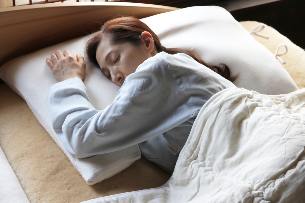 ウールは吸湿発散性に優れているため、夏にも快適に使えます。また繊維としてコシが強く弾力性が高いので頭と首をしっかり受け止めて支えます。