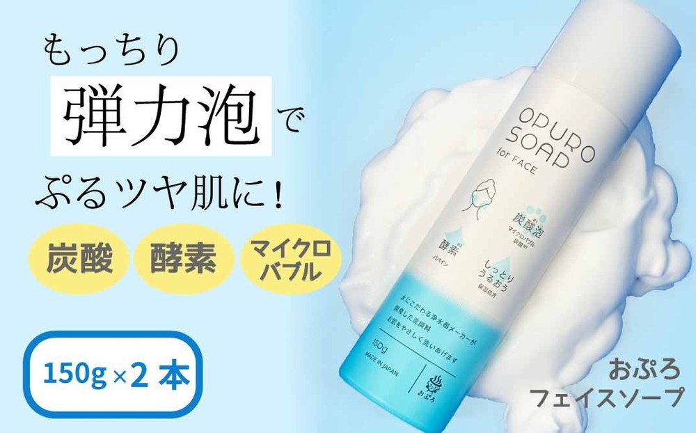 マイクロバブル化した濃密で弾力ある炭酸泡と酵素の力で毛穴の汚れがスッキリ! 炭酸泡 洗顔料 おぷろフェイスソープ(150g)×2本 MIZSEI | 炭酸洗顔 酵素洗顔 毛穴 マイクロバブル 洗顔フォーム ビタミンC 保湿 酵素入 ナノボール内蔵 塩素バリア機能も