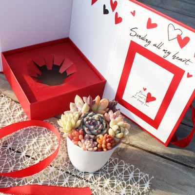 プレゼントにぴったり!ハートフルBOX(多肉植物寄せ植え)【1402847】