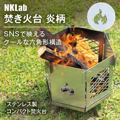組み立て簡単 炎が映えるステンレス製コンパクト収納焚き火台 <炎>【1417454】