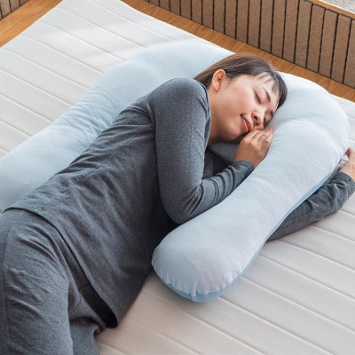 枕と抱き枕の良いところを融合して誕生!腕まで支えて首や肩への負担をサポート!