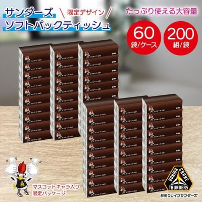 <令和6年5月発送>群馬クレインサンダーズ応援ソフトパックティッシュ400枚(200組)×60パック【1470852】
