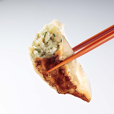ブランド青じそを、餃子1粒に2~3枚を使用し風味豊かに仕上げました。水餃子がお勧め。ヘルシーでフレッシュな味わいが女性にも大人気。