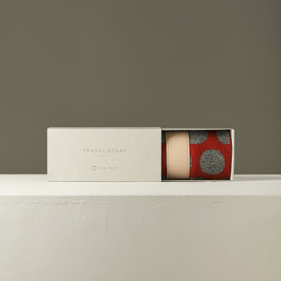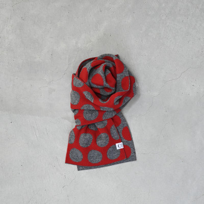 < OTA KNIT >TRAVEL SCARF トラベルマフラー(dot レッド × グレー)【1568546】