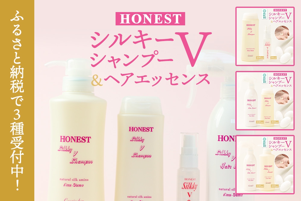 ★防腐剤や旧表示指定成分無添加! HONEST(ホーネスト)シルキーVシャンプー200ml・シルキーVヘアエッセンス300ml 2点セット