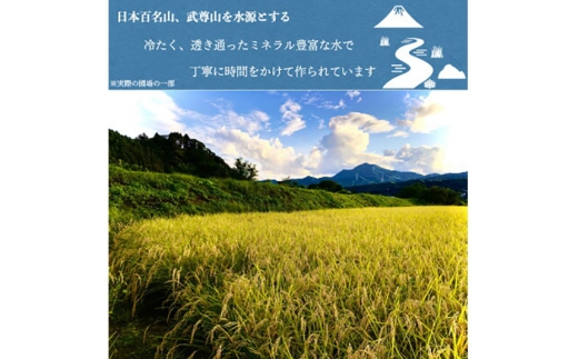 清らかな雪解け水の水源 標高2158mにそびえる日本百名山・武尊山を水源とする清らかな雪解け水。透き通ったミネラル豊富な自然の水は冷たく、お米を甘くしっかりした食感を与えてくれます。