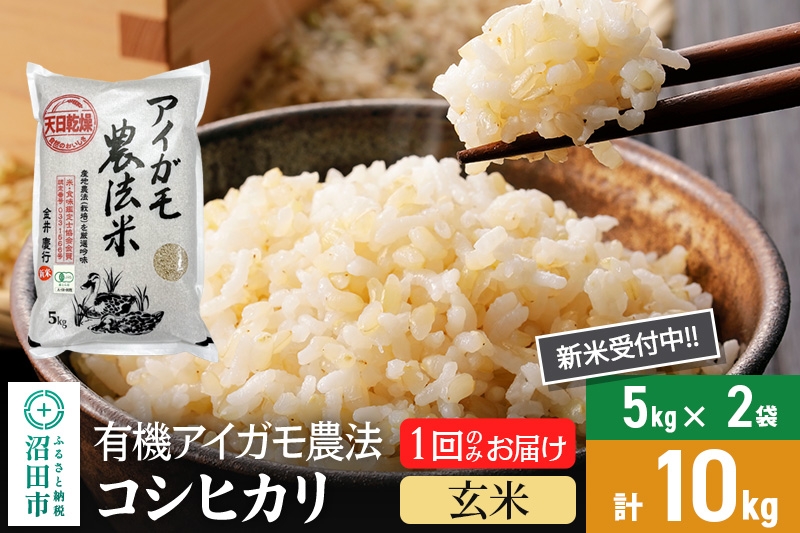 【玄米】令和7年産 新米 有機アイガモ農法コシヒカリ 10kg(5kg×2袋) 金井農園