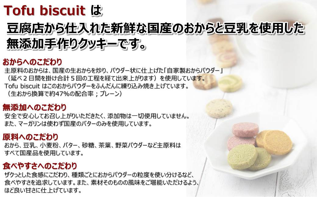 Tofu biscuitはこのおからパウダーをふんだんに練り込み焼き上げています。