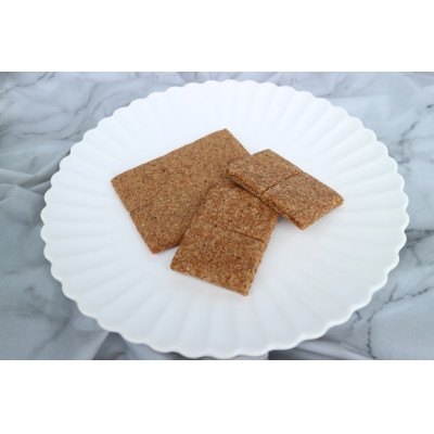 栽培期間中化学肥料を使用せず、天然資材の肥料のみで栽培されたコシヒカリ「漢熟米(かんじゅくまい)」の米ぬかを100%使用。素朴ですがクセになる味わい。