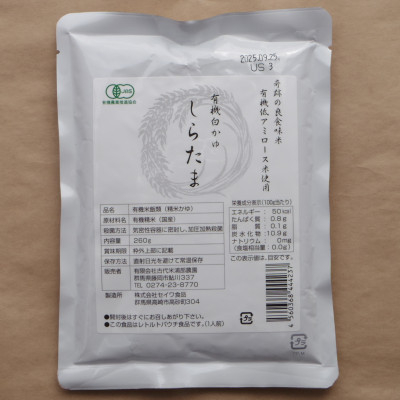 | 容量 | ■お礼品の内容について ・有機白かゆしらたま[260g×12個] 原産地:国産 ■原材料・成分 有機精米(国産) |