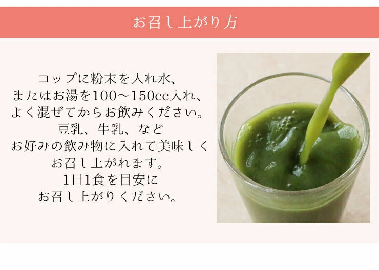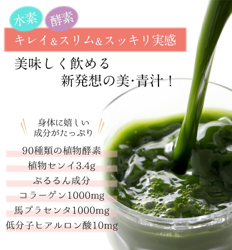| 容量 | 美容成分入り青汁 5g×50包 ▼原材料 難消化デキストリ(食物繊維)、コラーゲンペプチド、大麦若葉、クロレラ、90種植物発酵エキス末、馬プラセンタ、水素吸着宮古島産カルシウム、ロイヤルゼリー、ヒアルロン酸、(原材料の一部にゼラチンを含む) |