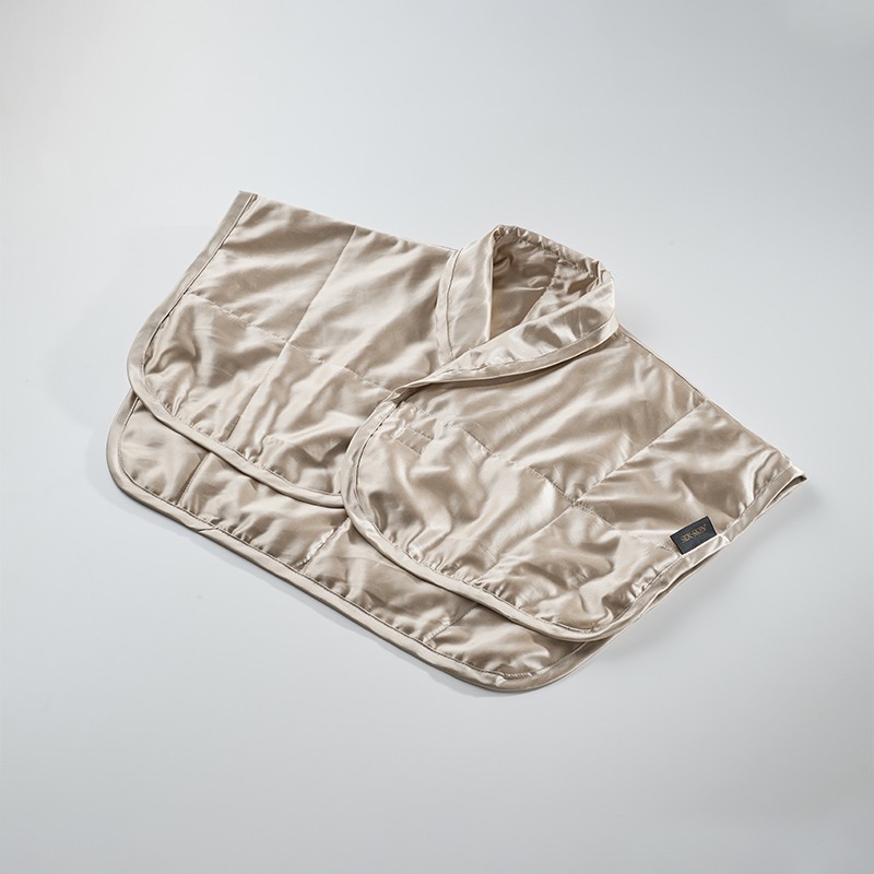 中わたに、貴重な富岡産シルク(ぐんま200種)を、特許技術のシルクフィル(R)加工し、シルク本来の持つ湿度調整機能・保湿性に加えて、包み込まれるようなフィット感にも優れ、従来の真わたよりもかさ高性・圧縮回復性・洗濯性にも優れています。 側生地の(タテ糸)に天然シルク生糸(ヨコ糸)に天然コットンを朱子織で織り込むことにより、シルクの贅沢な肌触りとコットンの洗濯性がそなわり、耐久性が両立し、ご家庭での洗濯が可能になりました。ご家庭やお車の中、仕事場で一年中、多用途にご使用頂けます。 ※画像イメージです。 ※貴重な富岡産シルクを使用し富岡市のオリジナル商品の為、受注生産になります。 ※カラーは「シャンパンゴールド」「ピンクゴールド」の2色から1つお選びいただけます。
