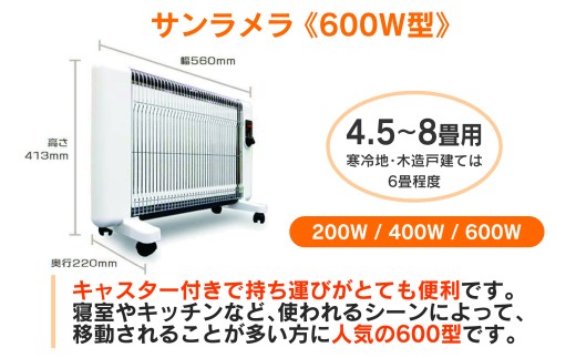 遠赤外線輻射式暖房器サンラメラ 600w型 Mホワイト