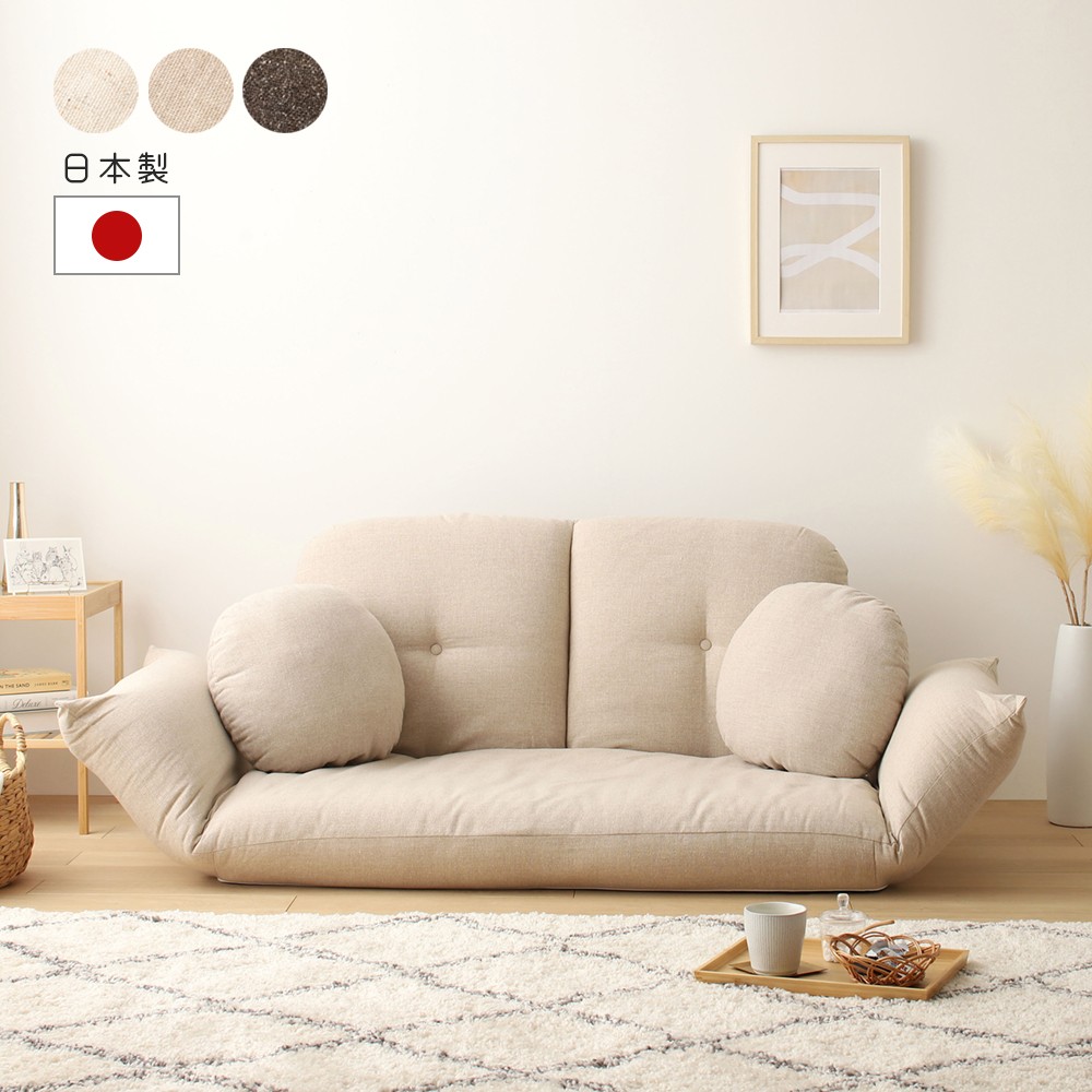 肘、背もたれ共に5段階リクライニング機能付き。背もたれは別々にリクライニングでき、色々なスタイルで楽しめます。座面高が低いのでこたつの時期も使用できます。