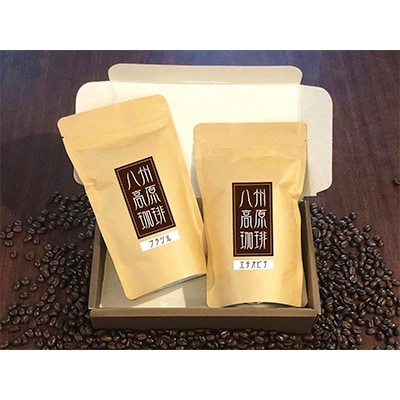 【八州高原珈琲】の珈琲は全部で15種類ありますが、中でも人気の定番2種『ブラジル プレミアム ショコラ』と『エチオピア』をセレクトしました。