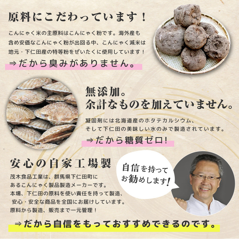 こんにゃく減米は地元・下仁田産の特等粉をぜいたくに使用しています。