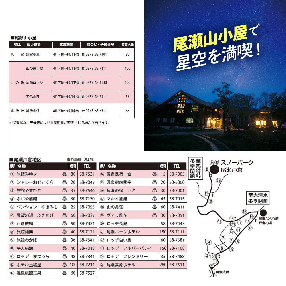 宿泊施設も充実しており、存分に楽しんだ後は温泉にゆったり浸かって疲れを癒やせるにも片品村ならでは。
