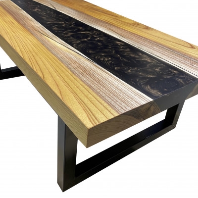 天然木を大胆に使用して作り上げたレジンテーブル。1枚板を分割しレジン(樹脂)と組み合わせて作成するテーブルは川の流れを連想させ、リバーテーブルとも呼ばれています。天然木、レジンの流れ方、どれを見ても決して同じものはない、唯一無二のテーブルとなります。脚はNatural Arts Furnitureオリジナルのメタルレッグスとなります。