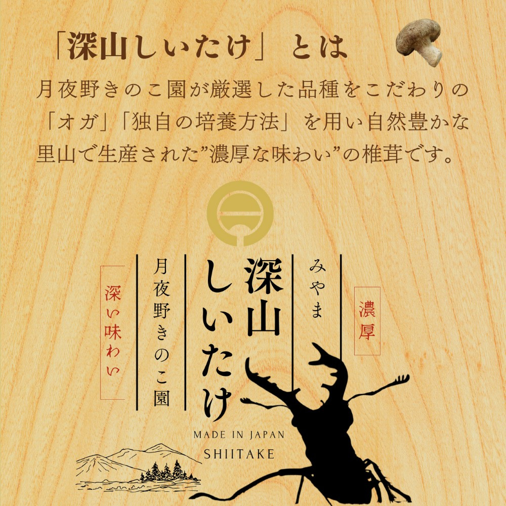 こだわりの「オガ」「独自の栽培方法」を用い、自然豊かな里山で生産された”濃厚な味わい”のシイタケ栽培がご家庭で楽しめます。
