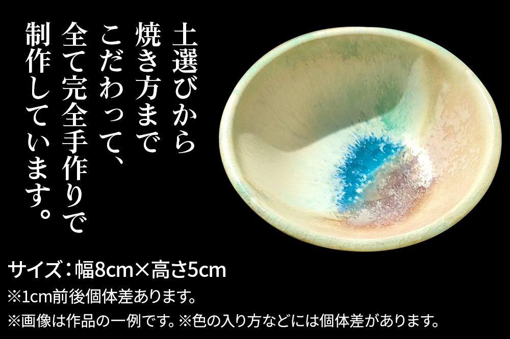 直感的に綺麗と思って頂けるものを目指し、日々色と向き合い、土選びから焼き方までこだわって、全て完全手作り。