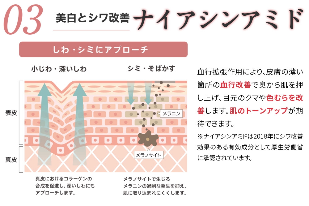 バクチオールやナイアシンアミド配合で、目のクマや目の下のたるみを優しくケアします。