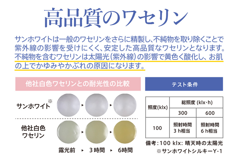 ・サンホワイトシルキーY-1は高品質のワセリンです。