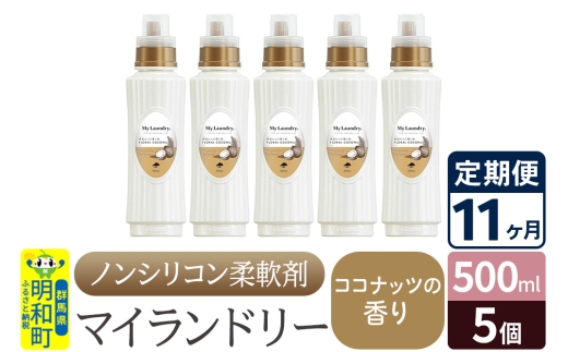 《定期便11ヶ月》ノンシリコン柔軟剤 マイランドリー (500ml×5個)【ココナッツの香り】