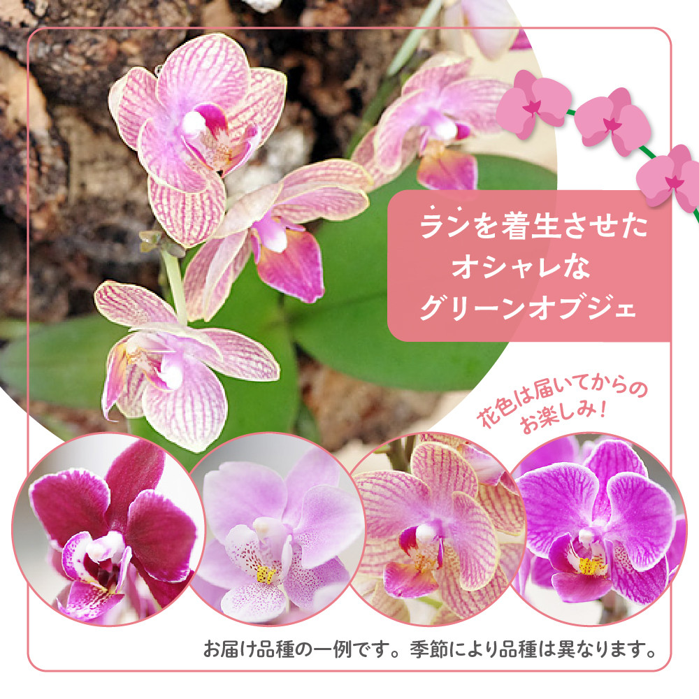 ランを着生させたオシャレなグリーンオブジェ 観葉植物 バージンコルクプランツ マイクロコチョウラン 花色おまかせ(1個) 群馬県 千代田町 花色おまかせ 胡蝶蘭 花 プレゼント ギフト 贈答用 送料無料 株式会社チャーム