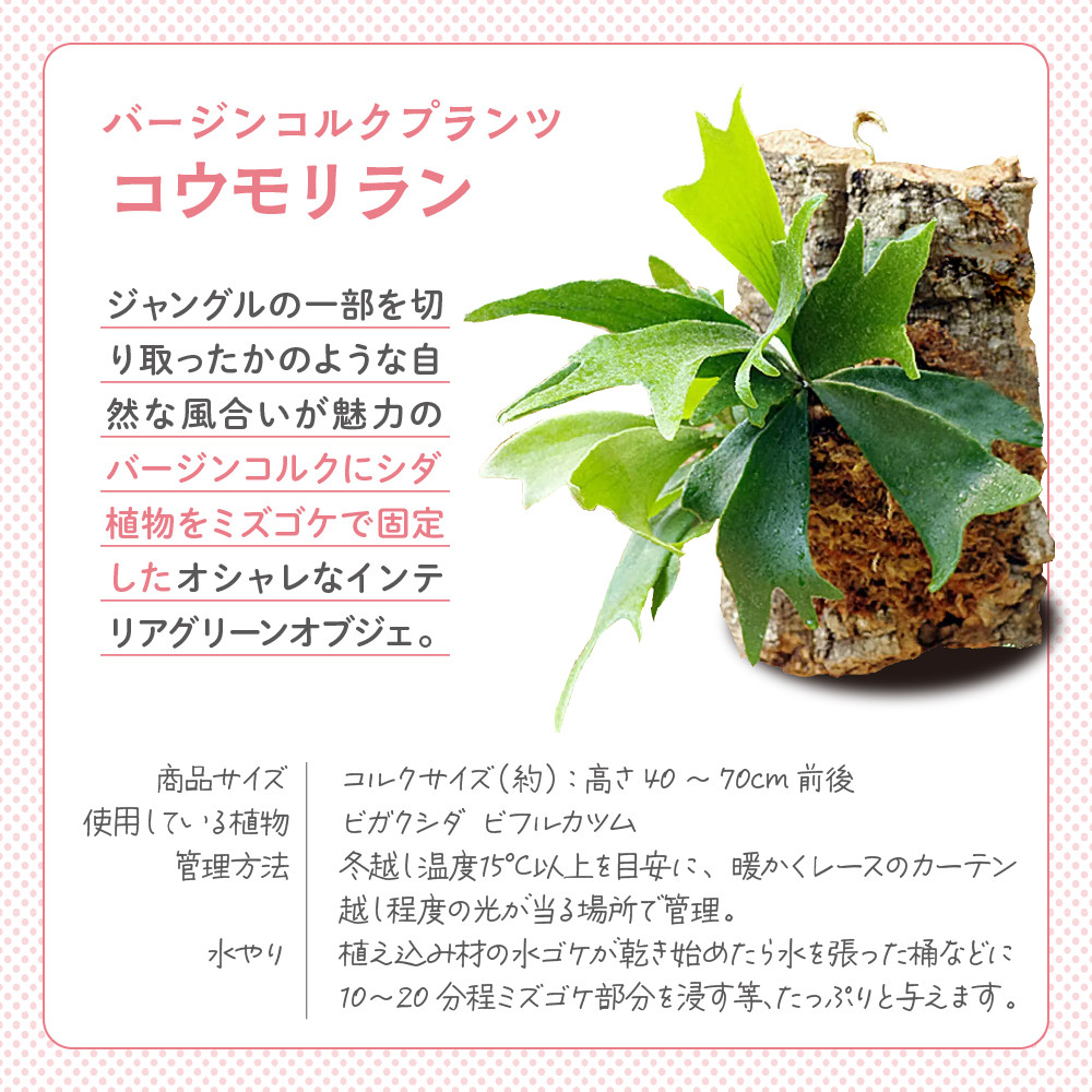 観葉植物を着生させたオシャレなグリーンオブジェ! 観葉植物 バージンコルクプランツ コウモリラン ビカクシダ ビフルカツム XLサイズ(1個) 群馬県 千代田町 趣味 インテリア ナチュラル 自然 緑 プレゼント ギフト 贈答用 送料無料 株式会社チャーム