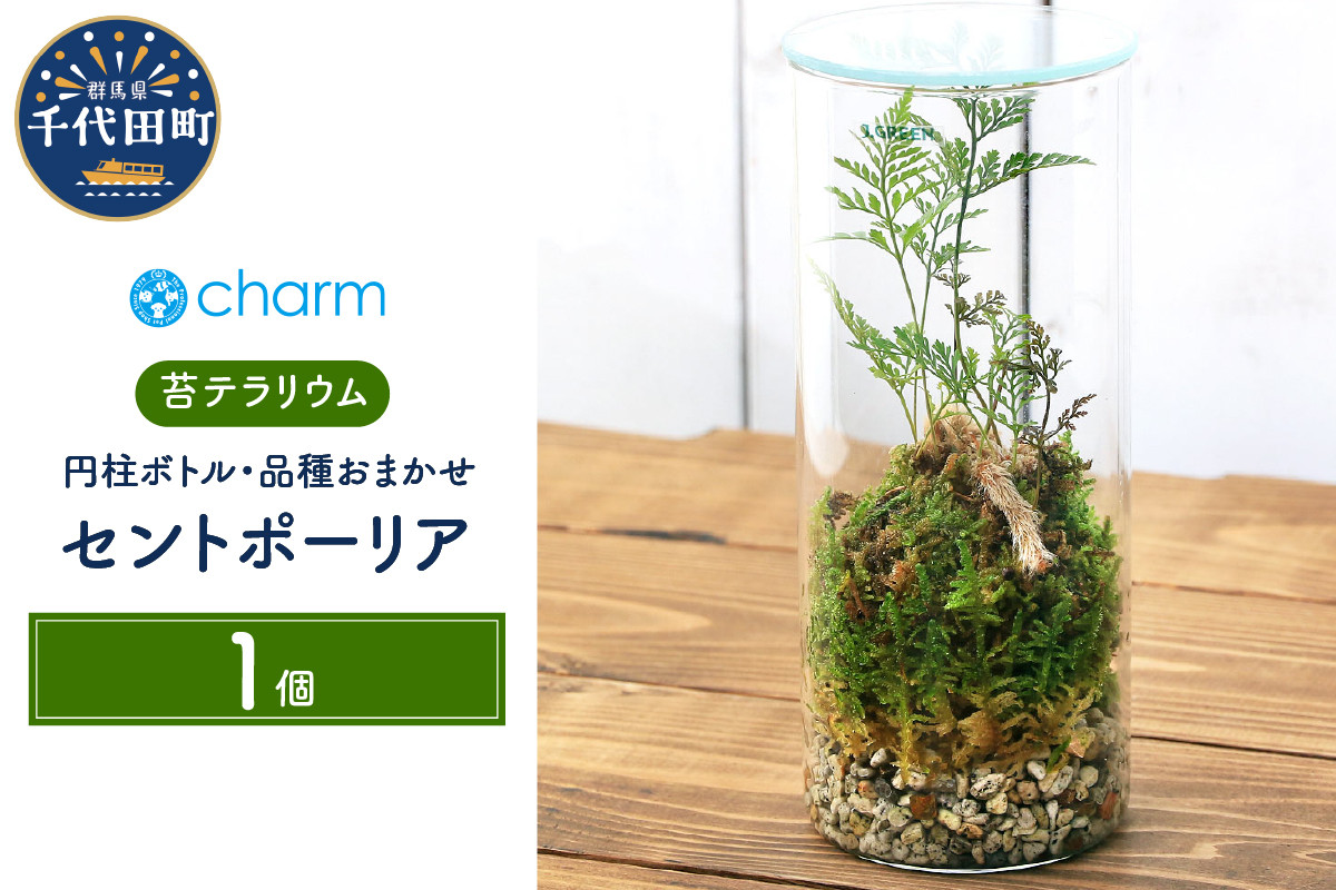 ガラス容器の中に小さな自然をとじ込めました★ 苔テラリウム トキワシノブ 円柱ボトルSサイズ 蓋付(1個) 群馬県 千代田町 インテリア ナチュラル 自然 リラクゼーション 室内栽培 プレゼント 送料無料 趣味 緑 人気 オススメ 初心者 玄関 リビング 株式会社チャーム