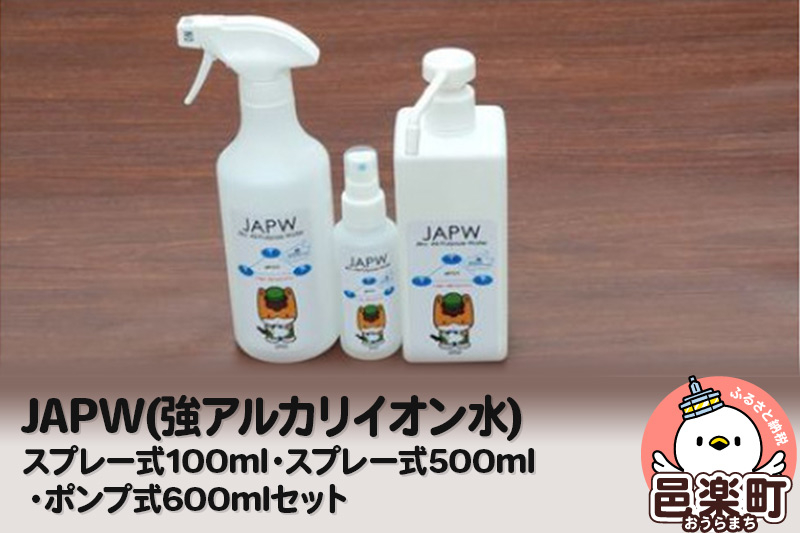 JAPW(強アルカリイオン水)スプレー式100ml・スプレー式500ml・ポンプ式600mlセット