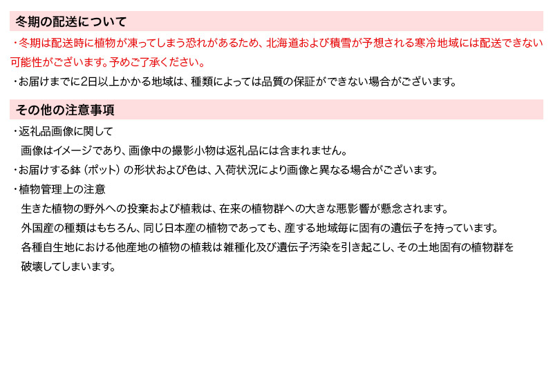 | 発送期日 | 10日を目安に発送(休業日除く)※年末年始等、長期休業や申し込みが殺到した場合など発送が遅れる場合もございます。 |