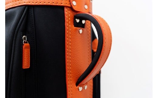 容量 | キャディバッグ 9型(3.5kg) 金具:ニッケル色 革:シュリンク牛革(オレンジ色) 本体生地:ナイロン(ブラック色) ※ネーム刺繍不可 |