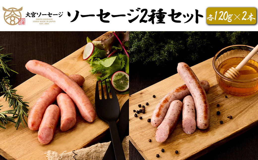 埼玉県産豚肉のみを原材料にした贅沢なハムソーセージをお届けします。 【大宮ソーセージ】ソーセージ2種セット(スモーク・蜂蜜) 各120g×2本 【11100-1434】
