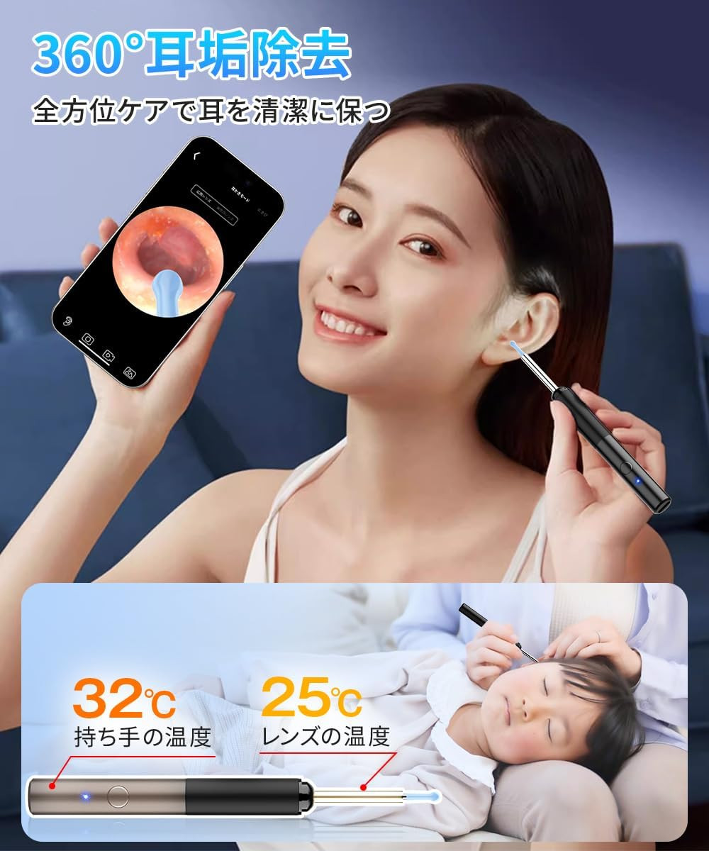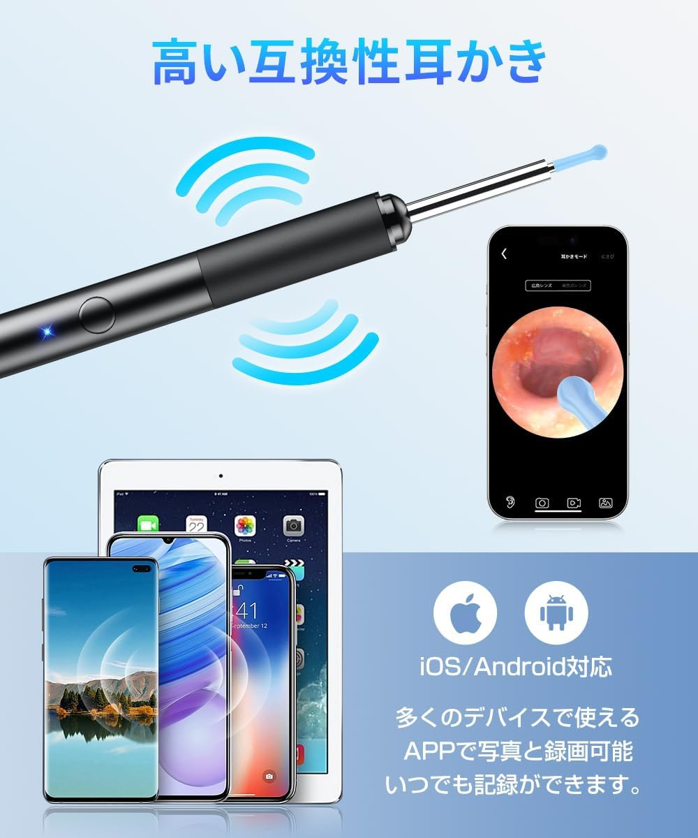 操作が非常にシンプルで、スマートフォンにアプリをインストールするだけで、誰でも簡単に使用できます。アプリを通じてリアルタイムで映像を確認できるため、安全に耳掃除ができるのが魅力です。また、撮影機能も備えており、耳掃除の過程や状態を記録することができます。記録した映像は、後から見直して耳の健康管理に役立てることができるので、特にお子様や高齢者の耳ケアに適しています。