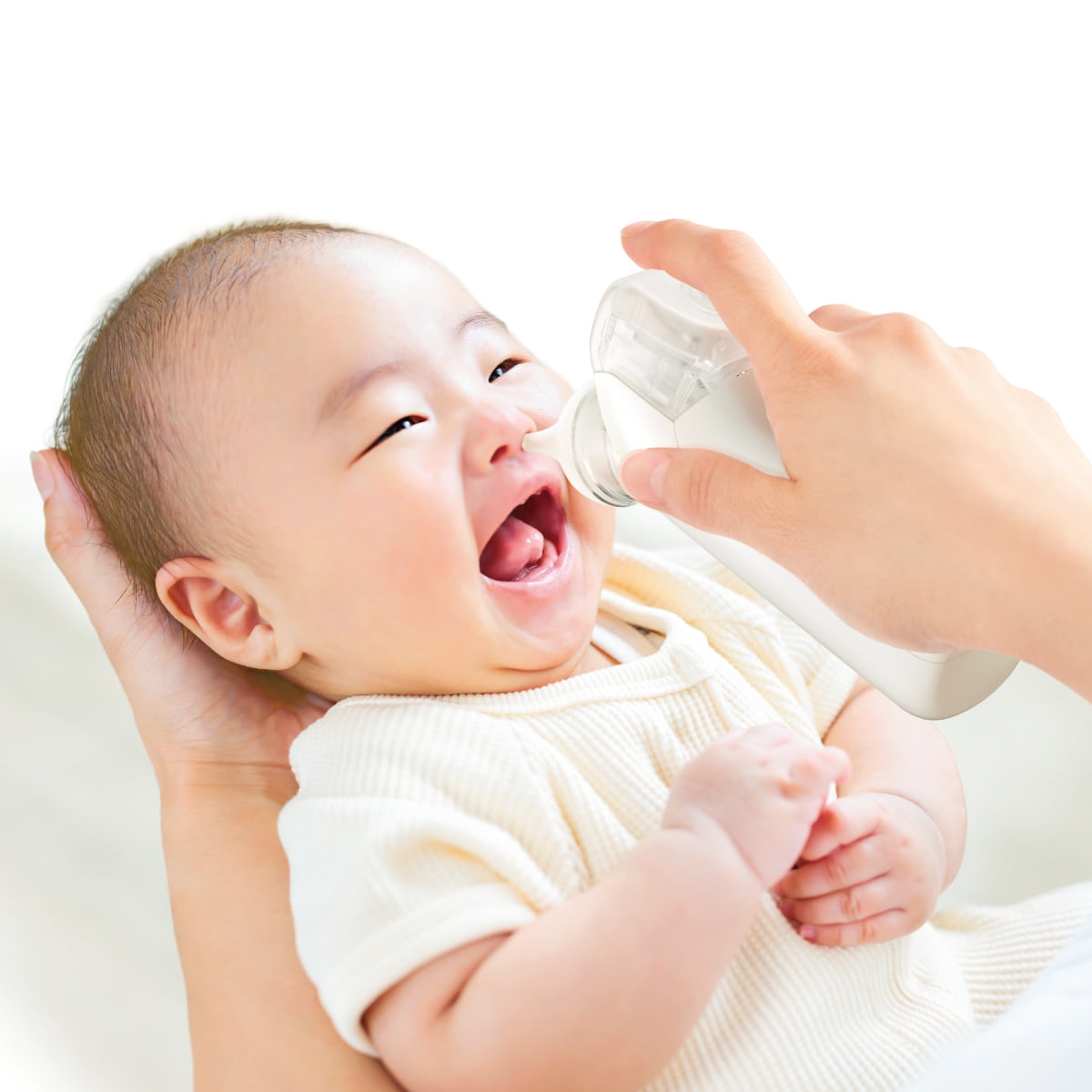 うるおいミスト×パワフル吸引で、鼻水を“するん”と吸引!軽量ハンディタイプの、ミスト付き電動鼻吸い器(赤ちゃん用 鼻水吸引器)が登場。