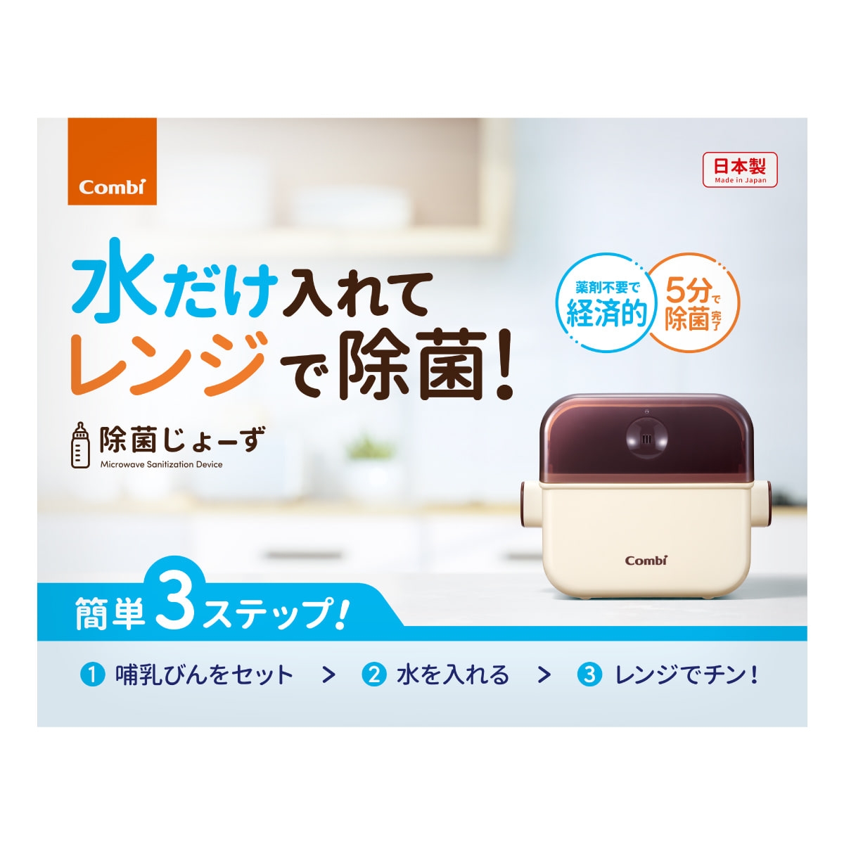 水だけ入れてレンジで除菌!哺乳びんの除菌・洗浄グッズ、3ステップで簡単除菌。 【119218】除菌じょーず(バニラ) 【11100-1712】